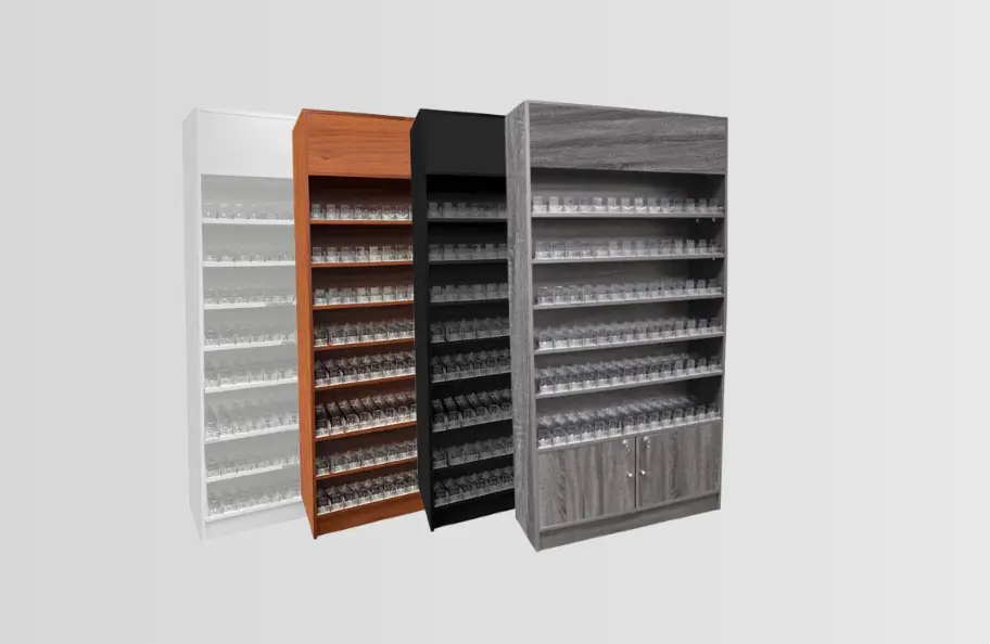 High-ticket bestsellers. Features built-in acrylic pushers designed specifically for vape and dispensary products. A massive demand item for smoke shop build-outs.